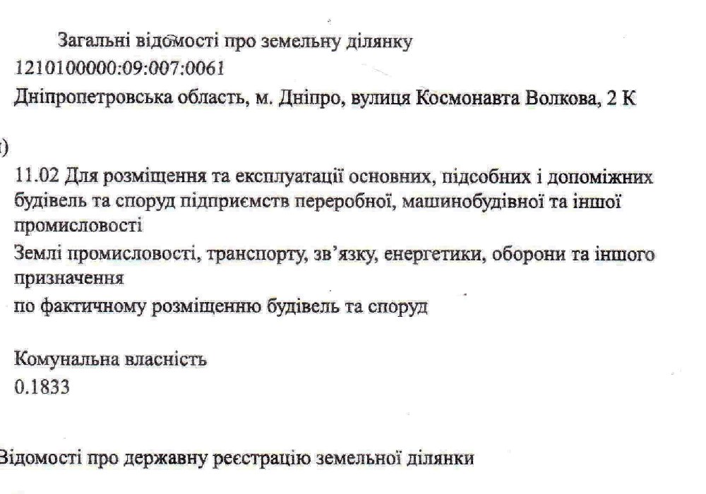 Цільове призначення об'єкта:Продаж виробничого приміщення